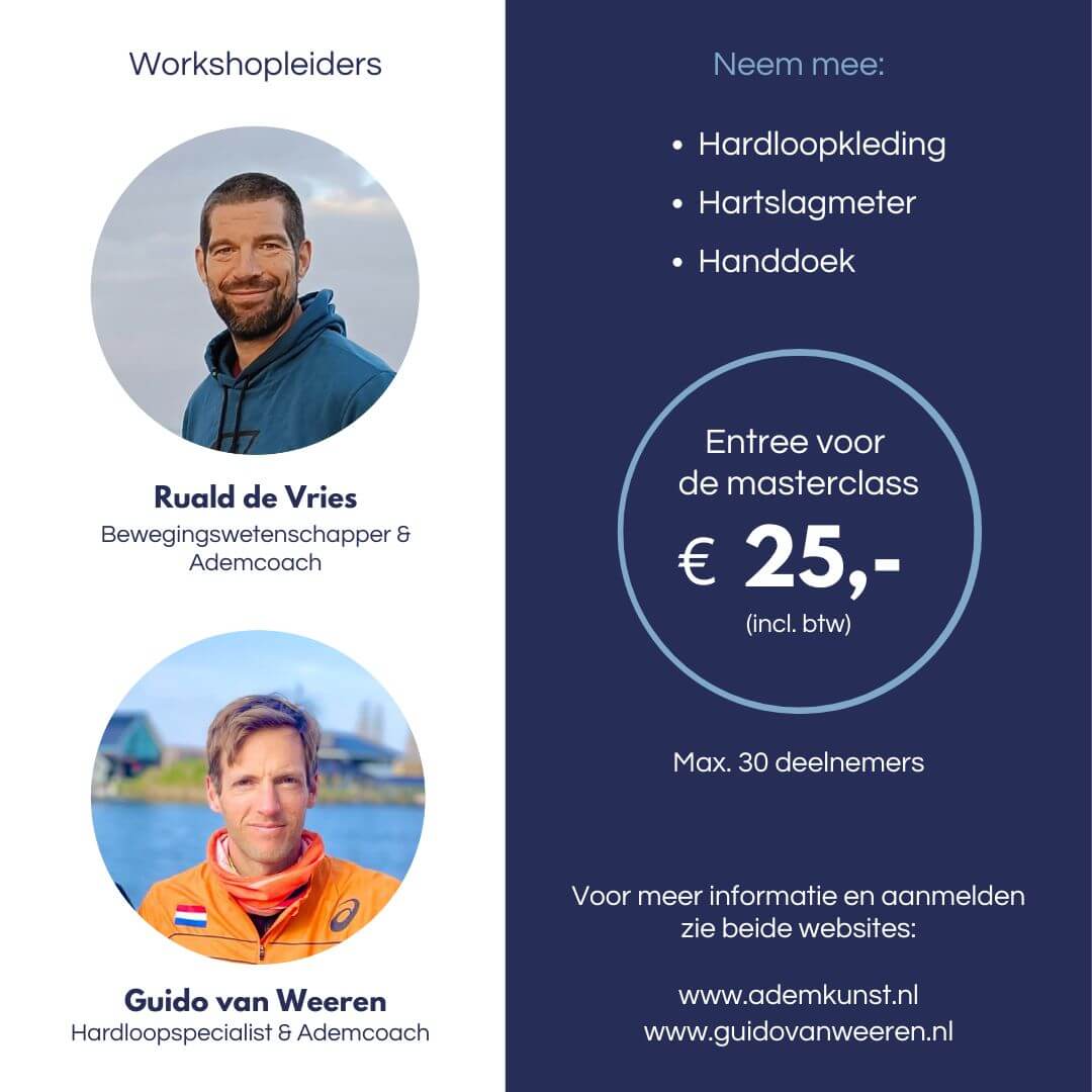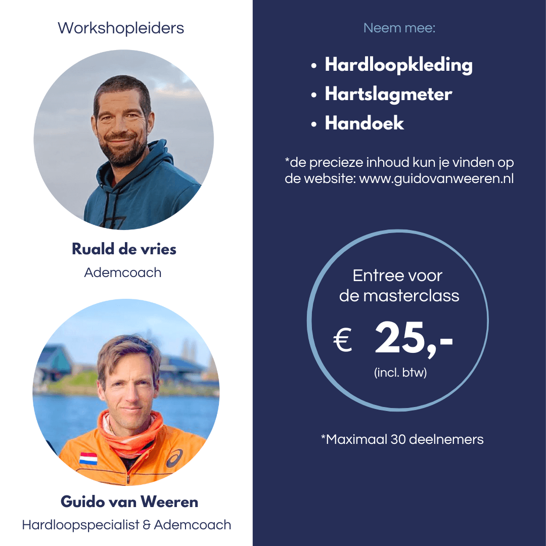 In de Running Masterclass komen verschillende werelden bij elkaar. In deze training staan looptechniek, ademtraining en koude training centraal. Al deze element zorgen er voor dat je een completere hardloper wordt. Wil je alles uit jezelf halen? Schrijf je dan in voor deze masterclass in de praktijk!